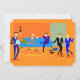Este Partido da Gay Retro é laranja, gatinho, e completamente fabuloso! A design de arte minimalista, ao estilo de 1960, apresenta uma parede de tijolos laranja e turquesa, Primaveras de Palma, barreira de bloqueio. O sofá moderno, de baixo perfil, azul, tufado do século médio, com um travesseiro decorativo verde de abacate, laranja, tapete de pele zebra e um fixador atômico, de cone preto, fazem o fundo perfeito para este sofisticado cocktail. Os cinco cavalheiros, todos vestidos de ternos impecavelmente talhados, estão a ter um gay de ol a dançar para os registros vinílicos, e bebendo os seus cocktails cor-de-rosa em óculos clássicos de martini. Um dos homens está até carregando um bolo azul de ovo de robin, de duas camadas. Agora é uma festa! O lado oposto tem muito espaço para você se personalizar com os detalhes do seu partido.