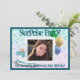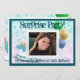 O convite de aniversário de surpresa divertida e festiva apresenta bolo com cobertura azul e branca, sua própria foto personalizada e balões coloridos com fundo de estrelas brancas. Excelente por aniversário de 30 anos ou qualquer ano. Personalize todo o texto do seu partido! Balões verdes, amarelos, roxos e azuis, excelente para comemorações de aniversário de homens ou mulheres.