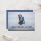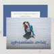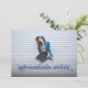 Este convite e anúncio de formatura de foto sem bordas apresenta as palavras "aventuras esperam" em azul. Tem espaço para os detalhes do seu graduado na frente com ainda mais espaço para texto no verso do cartão.