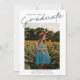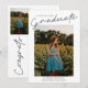 Este convite de formatura com foto elegante e moderno apresenta uma sobreposição de graduação em script e nome, escola e foto personalizáveis na frente. O verso oferece parabéns e detalhes do evento com mais 2 fotos adicionais. Uma ótima maneira de mostrar seu graduado.