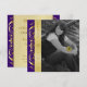 Adicione sua própria foto e escolha a cor de fundo para nossos Convites de Formatura Roxo com Foto e Rolagem Dourada!