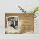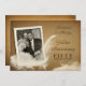 Convites de Festa de Aniversário de 50 Anos com texto em estilo de prensa de letras retrô vintage, fundo de pergaminho rústico antigo e acentuado com uma pluma de pena branca elegante (parte da imagem - não uma pena real), com inserção de foto. Faça o upload da sua foto e adicione os nomes, data e detalhes. Entre em contato conosco para personalizar este estilo para outras celebrações de marcos importantes. Selo postal e cartões de agradecimento coordenados disponíveis mediante solicitação.