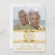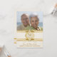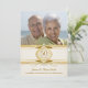 Convites de festa de aniversário de 50 anos personalizados elegantes -- Acentos dourados vintage decorativos em fundo de damasco marfim com moldura de foto e monograma antigo clássico. Adicione sua própria foto e personalize o nome, data e detalhes para a celebração do seu aniversário especial. Envelopes, selos e cartões de agradecimento disponíveis. **OBSERVAÇÃO: Tamanho para cartões de convite PEQUENOS 4,25 x 5,5. Outros tamanhos e estilos disponíveis na galeria.