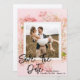 Anuncie o seu casamento em estilo floral elegante! A imagem mostra: Desenho floral rosa lindo com espaço para foto, tipografia elegante e detalhes românticos. Cartão de alta qualidade com acabamento luxuoso. ✓ Detalhes personalizáveis ✓ Perfeito para fotos ✓ Múltiplas opções de layout ✓ Impressão profissional. Envio rápido! Crie convites de salvar a data deslumbrantes que dão aos convidados uma prévia linda do seu dia especial.