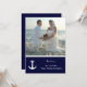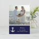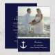 Somente recepção, após o casamento, convites temáticos tropicais ou náuticos com modelo de foto. Papelaria clássica azul-marinho e branca com texto de modelo, casal de âncora branca e estrela-do-mar. Apresentando os recém-casados. Atualize o papel se desejar.