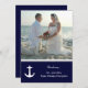 Recepção apenas, após o casamento, convites temáticos tropicais ou náuticos com modelo fotográfico. Papel de carta clássico, azul-marinho e branco com modelo, âncora branca e casal-estrela. Apresentando os recém-casados. Atualize o papel se você escolher.