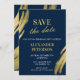 Convites de Amizade Elegante Salve a data Marinho Dourado chic