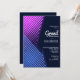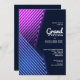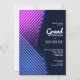 Os convites ou anúncios de grande abertura apresentam luzes de néon roxas e azuis sobre fundo azul escuro e seus detalhes em caracteres quicos. Personalize o texto, a fonte, as cores da fonte para ajustado de sua empresa e ocasião.