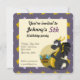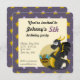 A impressão de aniversário convida com a ilustração de um dragão negro guardando um tesouro, sobre o fundo do padrão das estrelas. Ilustrada por Maxi Harmony