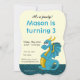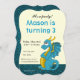 Aniversário de impressão com ilustração do dragão azul giro; convite de aniversário fantasia temido ilustrado por Maxi Harmony