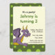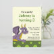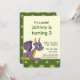 Festa de aniversário de impressão de para crianças com ilustração de um pequeno dragão roxo giro em padrão de bolinhas verde, design para crianças ilustrado por Maxi Harmony