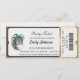 Entre em um mundo de mistério e elegância com este convite de ingresso para festa de máscaras de luxo. Com uma máscara emplumada em tons de azul-teal e dourado contra um fundo dourado brilhante, este design é perfeito para um aniversário de 18 anos, Sweet 16 ou qualquer gala formal. O layout único em estilo de ingresso inclui um código de barras realista e aparência perfurada, fazendo com que seus convidados se sintam como se estivessem segurando um passe VIP para um evento exclusivo. Personalize facilmente o nome, data e local para se adequar à sua celebração.
