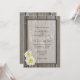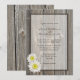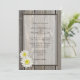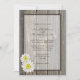 Os convites rústicos do casamento com uma margarida branca projetam em um fundo envelhecido da madeira do celeiro. Obtenha os cartões de resposta rústicos de harmonização do casamento.