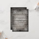 Os convites de madeira rústicos quadro vintage do casamento do país com um fundo de madeira afligido do celeiro cinzento com quadro ornamentado branco do flourish do redemoinho projetam em torno dele. Estes são grandes para casamentos ocidentais do país, casamentos vintage, e casamentos rústicos do país.