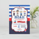Esses grandes cartões de convite dos Sailor Boys apresentam meninos marinheiros e todos os temas náuticos, como um barco, um farol e uma âncora com combinações de cores azul, vermelho e azul-marinho. Personalize este incrível convite dos Sailor Boys com o nome da sua criança, idade e detalhes da festa de forma fácil e rápida, simplesmente pressione o botão personalizar para reorganizar e formatar ainda mais o estilo e a colocação do texto. Inclui um design de verso do convite correspondente.