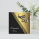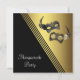 Convite de festa de máscaras de Carnaval elegantemente decorado em preto e dourado. Personalize com sua escolha de estilo de fonte e cor de fonte.