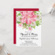 Convites de Natal para o brunch do dia após o casamento e tema de férias com uma grande poinsettia rosa, flores de inverno, pinheiros e folhas de azevinho e seus detalhes em letras elegantes. ITENS COINCIDENTES em nossa loja.