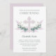 Este elegante convite batizante apresenta uma cruz rosa sobre folhas de aquarelas e botões de flores, ideal para a ocasião especial de sua filha. Produtos CORRESPONDENTES disponíveis em nossa loja.