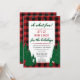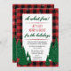 Amizade feliz! Este belo convite apresenta um fundo xadrez preto e vermelho e árvores de Natal nevadas e é perfeito para convidar amigos e vizinhos para comemorar as férias.