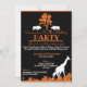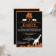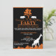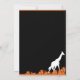 Convites pretos e laranja com silhuetas brancas e laranja de vida selvagem africana e folhagens. Personalize suas informações como quiser para o seu evento, usando o botão personalizar acima. Todos os meus designs são © Novastorm Designs