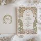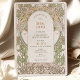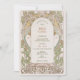 Este convite de chá de noiva deslumbrante apresenta o estilo icônico Art Nouveau de Alphonse Mucha. O design é inspirado nas linhas elegantes e curvas fluidas do Art Nouveau, com um toque de glamour Art Deco. O convite apresenta detalhes florais intrincados. O texto é impresso em uma fonte estilosa, perfeito para qualquer celebração de chá de noiva elegante.