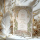 Este convite de noivado deslumbrante apresenta o icônico estilo Art Nouveau de Alphonse Mucha. O design é inspirado nas linhas elegantes e curvas fluidas do Art Nouveau, com um toque de glamour Art Deco. O convite apresenta detalhes florais intrincados. O texto é impresso em uma fonte estilosa, perfeito para qualquer celebração de noivado elegante.