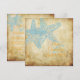 Pergaminho falso vintage com estrelas-do-mar em bege e azul.