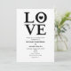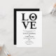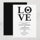 Convites de noivado de casamento preto e branco LOVE. A cor do fundo pode ser alterada para qualquer cor.