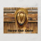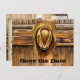 Cartões de Noivado Western Save the Date (postais) - apresentam uma porta elegante e rústica com detalhes vívidos da textura da madeira. Um grande chapéu de cowboy marrom-suede está pendurado na porta. Abaixo, uma fonte com tema western é usada para o texto de exemplo do save the date. O verso dos save the dates apresenta a mesma porta com papel envelhecido e antigo pendurado nela por um percevejo vermelho. Você pode alterar a fonte, tamanho, cores ou até mesmo o texto para o que preferir. Você também pode mover as caixas de texto ou adicionar mais se desejar. Use o botão laranja "personalizar" abaixo da demonstração do postal. Se estiver satisfeito com a cor, estilo e tamanho da fonte, basta usar a função "personalizar" à direita da demonstração para começar. Se você adora o design, certifique-se de verificar "natureprints" ou "loja" acima para