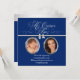 Convite de Quinceanera azul royal com foto de bebê e foto atual. Este convite de Quinceanera azul marinho com foto apresenta molduras ovais elegantes para duas fotos - uma de quando você era bebê e a outra atual. Personalize este convite de Quinceanera com foto azul e branco elegante adicionando suas fotos, detalhes do evento, estilo de fonte, tamanho e cor da fonte e texto. Por favor, observe que todos os cartões e desenhos de convites que você encontrará no Zazzle são gráficos impressos sem joias, laços, relevos, rebaixamentos ou peças ou partes adicionadas.