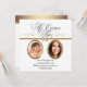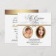 Belo convite de Quinceanera com foto de bebê e foto atual em branco e dourado. Este convite de Quinceanera com foto em dourado doce apresenta fita e laço elegantes em dourado com molduras ovais douradas para duas fotos de sua filha linda - uma como bebê e a outra como ela é agora. Personalize este convite de Quinceanera com foto em branco e dourado elegante adicionando suas fotos, detalhes do evento, estilo de fonte, tamanho e cor da fonte e texto.