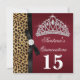 Convites de festa Quinceanera elegantes em vermelho rubi com estampa de leopardo. Este convite de festa de aniversário de leopardo vermelho lindo é facilmente personalizado para o seu evento, bastando escolher o botão "Personalize!" para começar a adicionar os detalhes do seu evento, estilo de letra, tamanho e cor da letra e texto. Por favor, note que todos os adesivos, cartões e desenhos de convites que você encontrará no Zazzle são gráficos impressos sem joias, laços, relevos, ou peças ou partes adicionadas.