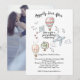 Você está se casando no exterior, tendo um casamento de destino, talvez até fugindo e querendo organizar uma recepção de casamento quando estiver em casa para os convidados que não puderam comparecer à cerimônia de casamento no exterior. Este convite informa aos seus convidados quando e onde você vai se casar, seguido pelos detalhes que eles precisam para a recepção de volta à terra natal. Este convite apresenta um tema de viagem moderno e desenhado à mão, juntamente com uma tipografia de estilo manuscrito. Você pode adicionar uma foto do casal no verso ou removê-la e adicionar outra imagem de sua escolha.