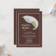 Este convite de recepção de casamento apresenta um lírio-calla em um fundo marrom chocolate como ponto focal. Seus nomes aparecem à esquerda do lírio-calla. O convite pode ser personalizado com o local e data do seu casamento e todos os detalhes importantes da recepção pós-casamento. Uma ótima maneira de convidar seus convidados para uma recepção pós-casamento. Copyright henishouseofpaper