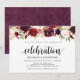 Este cartão de convite temático com flores rústicas de borgonha é perfeito para a celebração da recepção / festa de casamento. Adicione seus detalhes em fonte / letra preta correspondente.