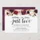 Este cartão de convite temático floral burgundy rústico é perfeito para a celebração da recepção / festa do seu casamento. Adicione seus detalhes em fonte / letra preta correspondente.