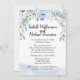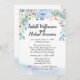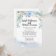 Convites de recepção de casamento furtivo florais azuis bonitos e elegantes, mas muito modernos. Os desenhos de aquarela são uma escolha muito popular este ano. Este convite combina flores de aquarela na borda superior e uma lavagem de aquarela azul suave para a borda inferior. Uma grande flor azul centra a borda superior. Flores amarelas cremosas e rosadas suaves menores estão aninhadas na folhagem.