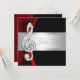 Elegante convite de recital de música prateado em vermelho e preto. Este convite de evento musical de clave de sol em vermelho e preto elegante serve para um convite de concerto, recital de piano, convite de sinfonia ou qualquer outra apresentação musical. Para personalizar para o seu evento, basta escolher o botão "Personalize!" para começar a adicionar os detalhes do seu evento, estilo de fonte, tamanho e cor da fonte e texto. Por favor, note que todos os desenhos de convite que você encontrará no Zazzle são gráficos impressos em papel liso sem partes ou peças salientes ou adicionadas.