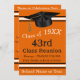 Convites de Reunião de 43ª Classe, Laranja, Preto e Branco. Você pode alterar o FUNDO LARANJA e o TEXTO Personalizável BRANCO e PRETO. Ligue para a Designer Linda: 239-949-9090 EST 10h às 18h para MUDAR a Reunião de 43ª Classe para QUALQUER Ano ou Alterar Ocasião para Graduação. Escolha com ou sem envelopes. Selecione Tipo e estilo de papel. TRANSFERIR design para mais de 1000 outras reuniões de classe de 43 anos. CALL Designer Linda: 239-949-9090 EST 10 às 18 horas. Consulte Fornecimentos, presentes e muito mais de Festas de Reunião de Classe QUALQUER ANO: https://www.zazzle.com/littlelindapinda/gifts?cg=196383779087774197&rf=238147997806552929