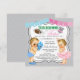 Convites de revelação de gênero Touchdowns ou Tutus para baby shower com adorável bebê loiro de cabelo claro menino e menina em um lindo fundo cinza com listras diagonais e faixas rosa e azul. Esses adoráveis convites de baby shower Touchdowns ou Tutus são facilmente personalizados para o seu evento simplesmente adicionando seus detalhes.