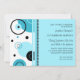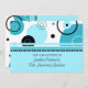 Convites de festas customizáveis do almoço do aniversário do empregado em círculos modernos e contemporâneos e no teste padrão de bolinhas azuis, preto e branco. Comemore muitos anos dos seus funcionarios de serviço com estes convites de festas originais do almoço do aniversário do escritório feito sob encomenda.
