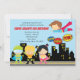 Convites bonitos do aniversário dos super-herói para meninos com menino super & fundo super do menina e o azul das bolinhas.