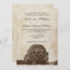 Convites marrons rústicos do casamento do carvalho. Uma silhueta bonita do carvalho do vintage é caracterizada neste convite temático do casamento da queda. Personalize facilmente com sua informação.