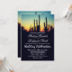 Convites do sudoeste do casamento do por do sol do cacto do Saguaro da arizona. Estes anúncios do casamento caracterizam um fundo bonito da paisagem do deserto com um por do sol e as silhuetas de cactos altos. Estes são grandes para um casamento no sudoeste ou em um casamento exterior da noite.