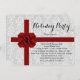 Tema elegante mas moderno com cantos arredondados. Este cartão de convite para festas de negócios ou escritório inteligente parece um presente! Esta bela caixa de presente falso, presente no estilo de 2 lados, com cartão de convite de Natal plano, tem um fundo branco de "papel embrulho" úmido com um grande arco de feriado vermelho e uma imagem de fita. Todos os Designs Copyright © CustomInvitesOnline.com