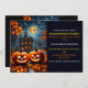 Este convite do Halloween ilustra uma velha mansão assombrada. Este convite único e festivo pode ser facilmente personalizado para mostrar quando, onde e um breve resumo dos detalhes da celebração do Dia das Bruxas que você pode ajustar para tornar este cartão bastante pessoal.