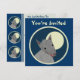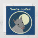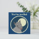 Cartões frente e verso feitos sob encomenda do convite. A parte dianteira tem customizável "você é convidada". A parte traseira tem a informação do convite--incorpore seu título do evento, data, tempo, lugar, e uma mensagem pessoal. "Forre lobo peludo do estilo do entalhe" contra uma Lua cheia, dentro de um círculo limitado. Design animal do divertimento.