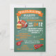 Diversão do chá de futebol para um chá, chá de fraldas ou chá de panela de casal. Apresenta um futebol, hambúrguer, cerveja, dedo espumante e buzina com sinais direcionais de quadro chanfrado em um fundo verde de quadro chanfrado. Ilustração desenhada à mão por McBooboos