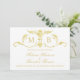 Dourados convites de casamento, com elementos elegantes de decoração dourada. design de dois lados. Personalize-o de ambos os lados, com seus monogramas, nomes e detalhes de casamento. Salve a data, obrigado, RSVP, informações etc.