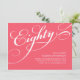 Este convite elegante do aniversário do 80 tem um design moderno quente de rosa e branco, e é inteiramente customizável. Um excelente convida para um partido formal ou ocasional.